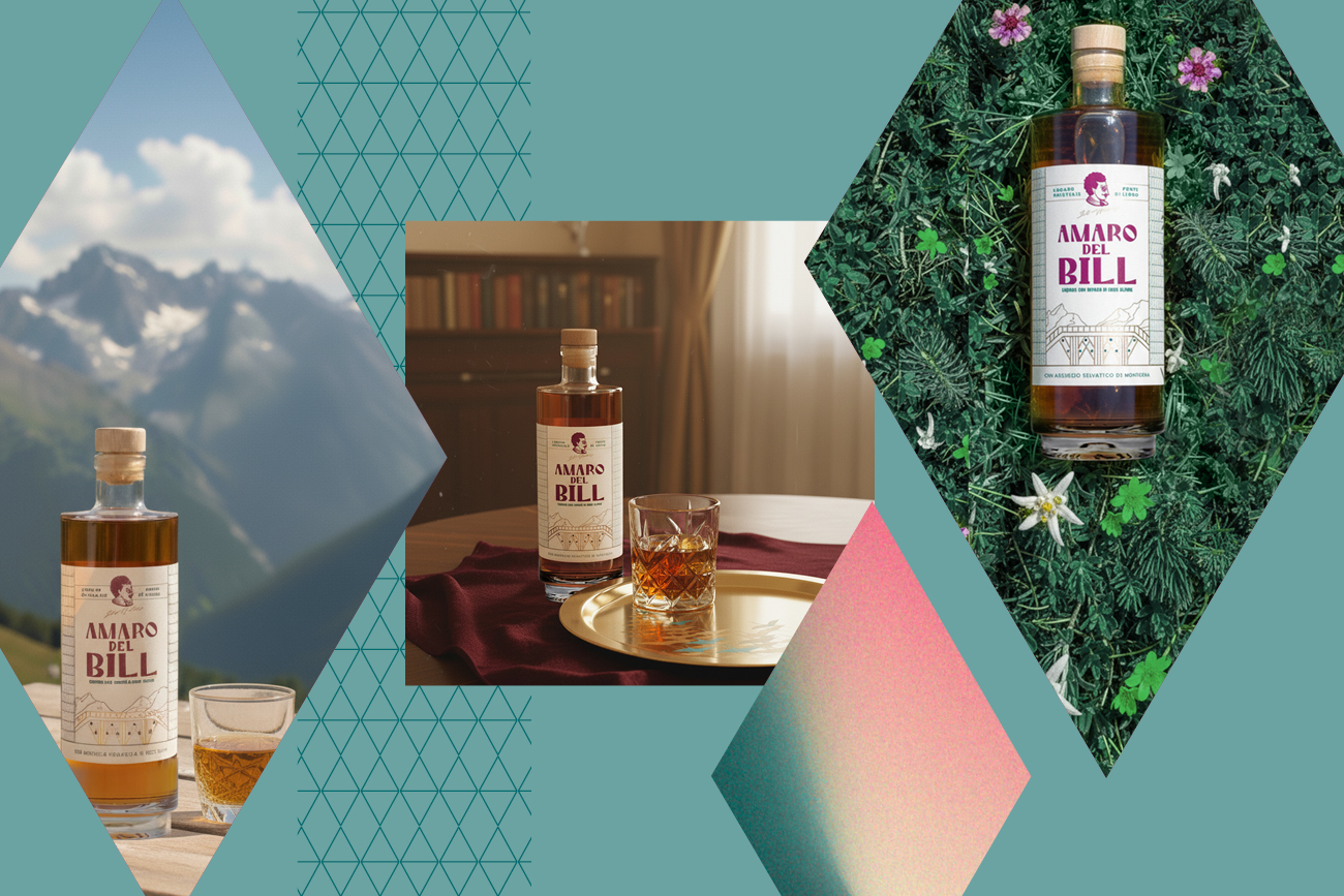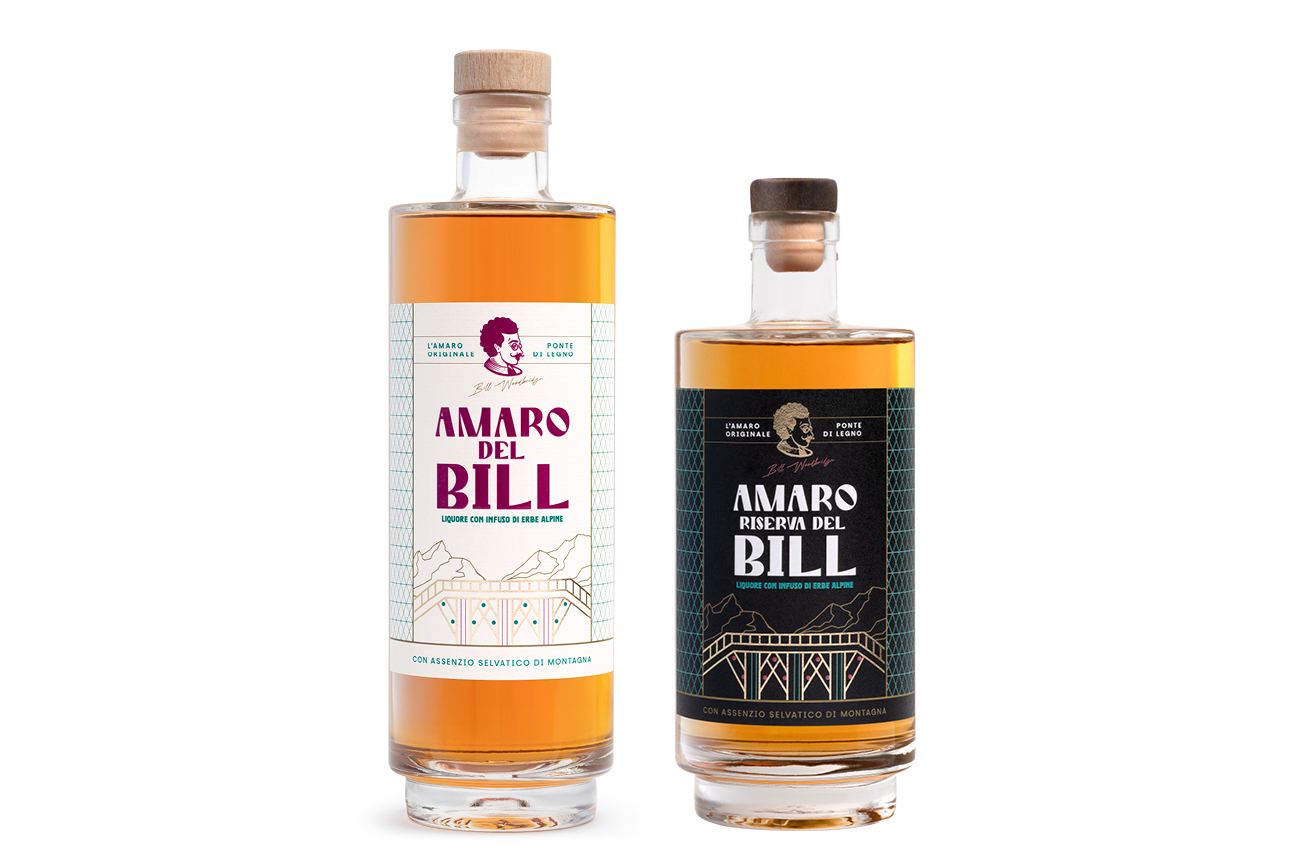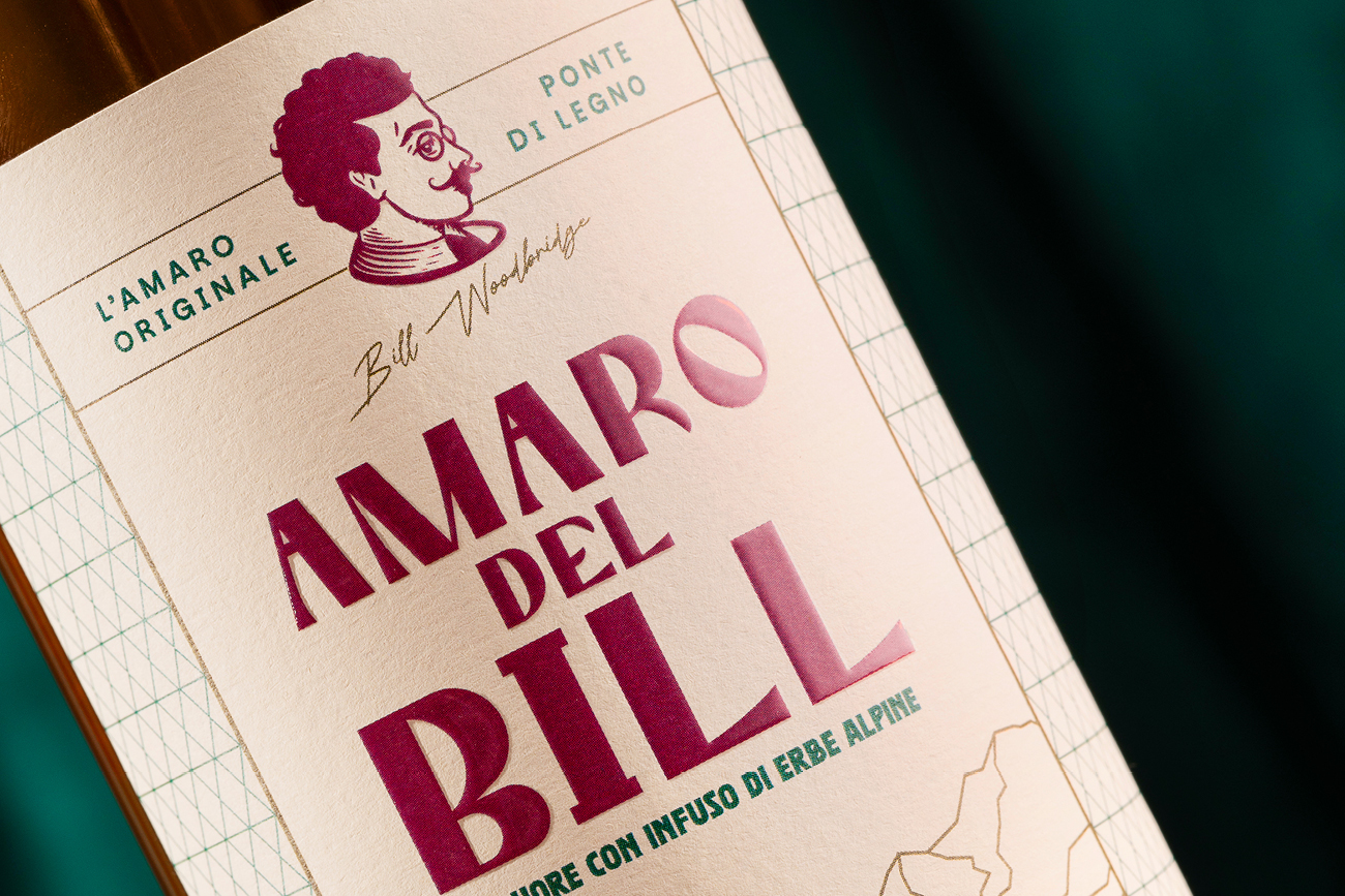 Protagonista dell’etichetta è l’illustrazione del Ponte, ricavata dallo stendardo originale di Ponte di Legno. La scelta di inserirlo grande, in primo piano, è per sottolineare e rendere evidente il luogo in cui nasce l’Amaro. Un pattern a rombi, in linea con la geometria dell’illustrazione, arricchisce l’etichetta. Il risultato è un amaro iconico, con un background storico, dall’appeal artigianale e ricercato.